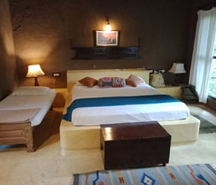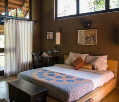 In total, Mahua Vann Resort has 12 spacious suites that comprise of 15 fully-equipped rooms. These rooms are equipped with some modern basic amenities like air conditioning, tea/coffee maker machine, wardrobe, study table, water bottle, attached bathroom with modern toiletries. There are three types of accommodation options at Mahua Vann Resort; Deluxe, Super Deluxe, and Machan Cottage. The deluxe rooms cover an area of 300-400 sq ft with a balcony and attached bathrooms. Whereas, the super deluxe cottages cover a floor area of 400 sq ft with attached bath and balcony. These cottages are perfect for couples and small families. On the other hand, machan cottage is spread over in an area of 400-450 sq ft and includes a thatched terrace. The machan cottage also includes a separate living area along with an attached bath and a balcony.